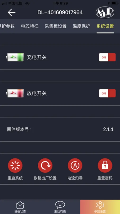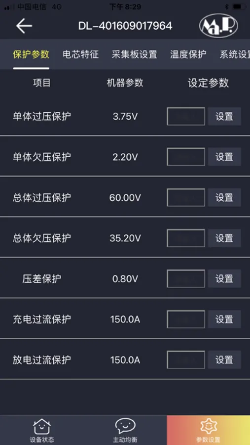 3. Security setting and reading battery protection parameters, users can set parameters and need to enter a password to modify the parameters.