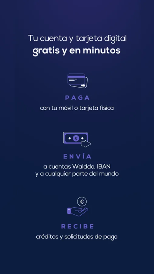 · Recargar dinero en tu cuenta de Walddo utilizando cualquier tarjeta de otra entidad.
