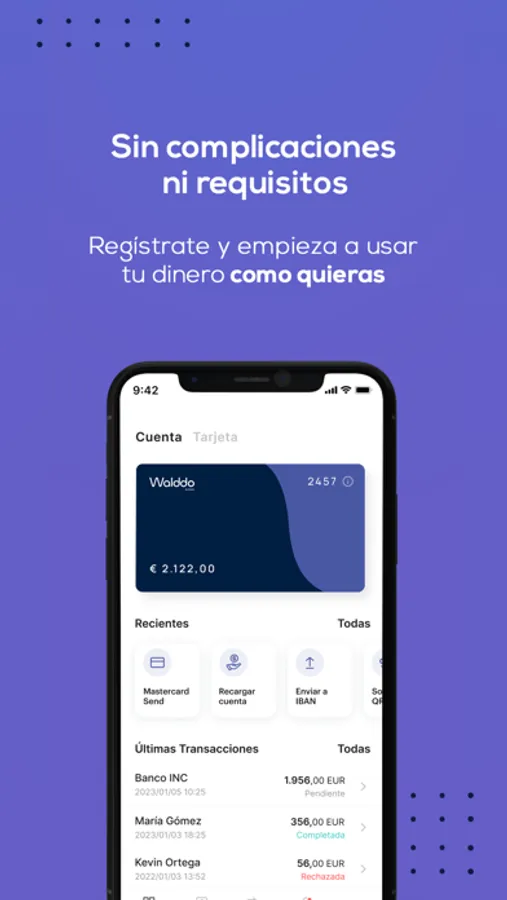 · Enviar dinero desde Walddo a cualquier cuenta con IBAN en la EU.
