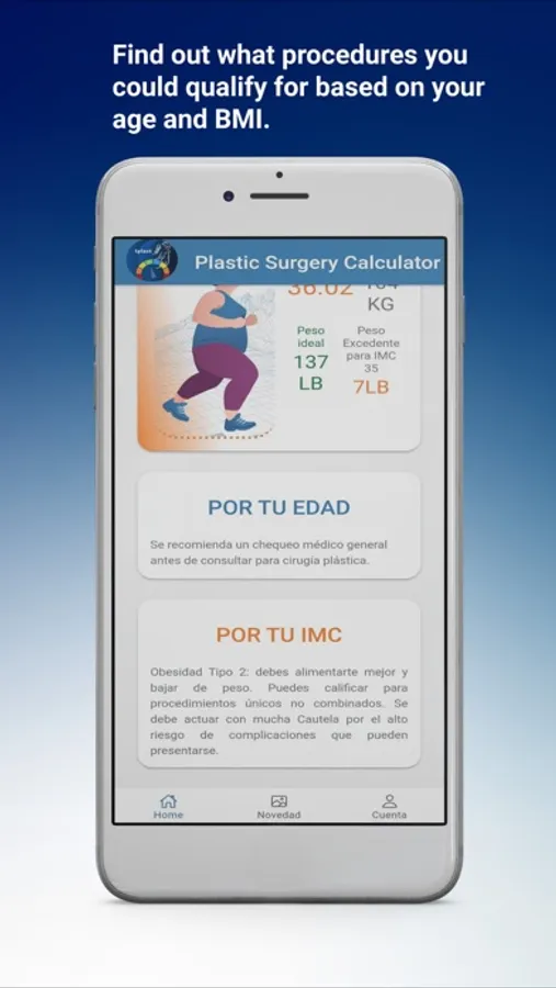 International aesthetic plastic surgery (Iplast)., also called Plastic Surgery Calculator or Iplast app. is a mobile application (app.) specially configured to calculate the body mass index (BMI) of women and men who wish to perform an aesthetic plastic surgery procedure on their body.