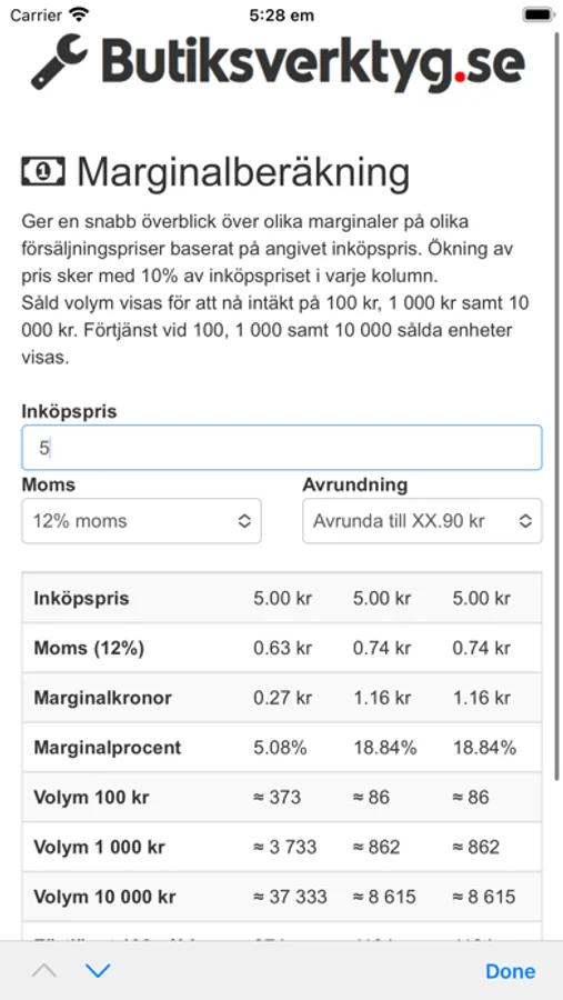 Butiksverktyg i din ficka! Alltid tillgång till marginalsnurra, multiprissimuleringar och andra fiffiga funktioner.
