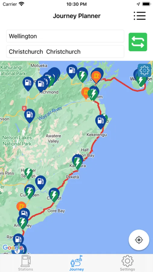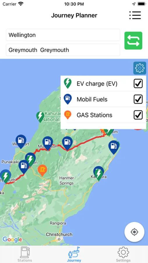5. Journey Planner feature with all petrol stations and Ev Charger on their selected route