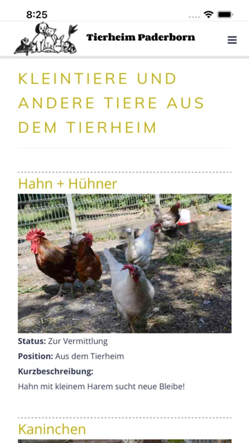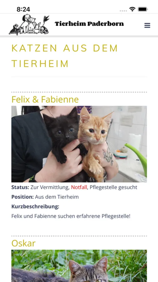 Stöbern Sie durch unsere stets aktualisierte Tiergalerie und entdecken Sie Hunde, Katzen, Kleintiere und mehr, die auf ein neues Zuhause warten.