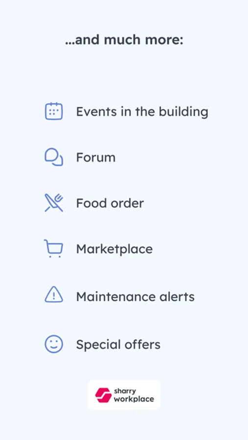 This application is intended not only for employees that work in Sharry Workplace but for their visitors as well. Important information about the office is organized on the dashboard, which dynamically changes throughout the day. The app offers more functionality including forums, ability to request maintenance, events, information about the office itself where you can find important contact, guides and documents.