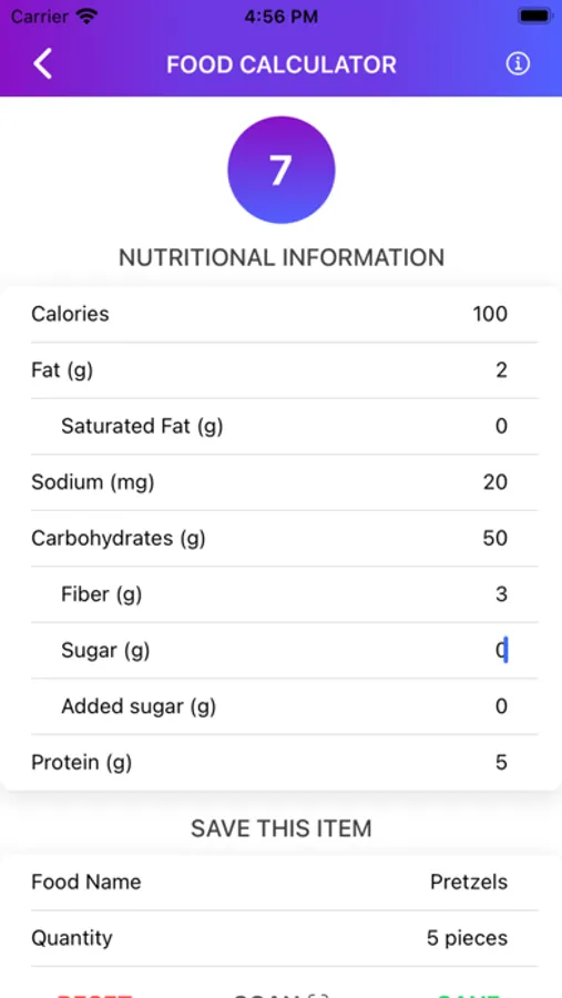 Depending on the system that a user chooses upon registration, a calculator feature will be available to them. On this page, one can choose to enter the nutriment values of their food or drink item manually or scan the barcode of that item to determine its value. Once saved, this item is automatically added to your custom food list on the food tracker page.