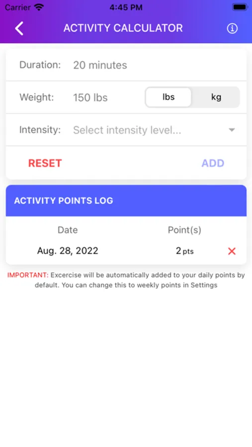 This feature turns exercise into consumable daily or weekly values. Input your current weight, duration, and workout intensity to calculate the number value of your exercise. The resulting totals will appear in a table viewable on this page and automatically added to your daily or weekly limit. We are currently working on integrating the ability to connect to external exercise data (ie. Fitbit) as well.
