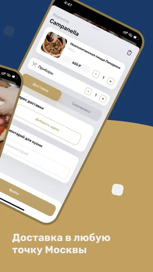 В приложении вы можете заказать как доставку, так и самовывоз.