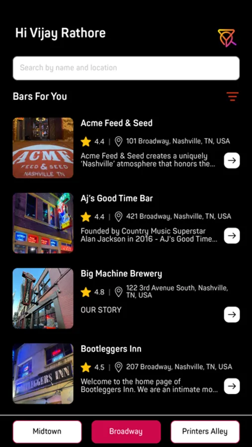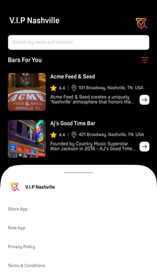 Based on your location, VIP Nashville provides top-rated bars within the area to help create an unforgettable night. So, whether you are looking for music, drinks, or a buzzing vibe—it’s readily available at your fingertips!