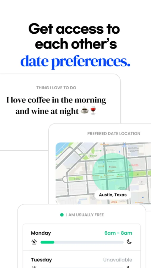 Our mission is to save you from spending endless hours chatting on dating apps and never actually meeting in real life #ghosted. So we decided to get rid of the chat completely so you can skip directly to the first date and show off your charming self in person.