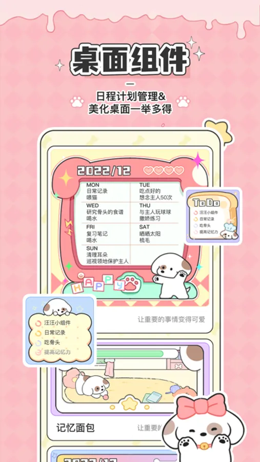 丰富可爱的桌面小组件,支持多种大小和样式。让日程管理也加入你的手机美化,展示计划&美化桌面一举多得!