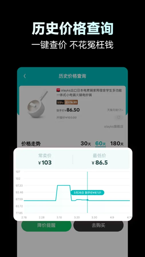 >历史价格查询:一键查询商品历史价格,让虚假促销无处遁形!