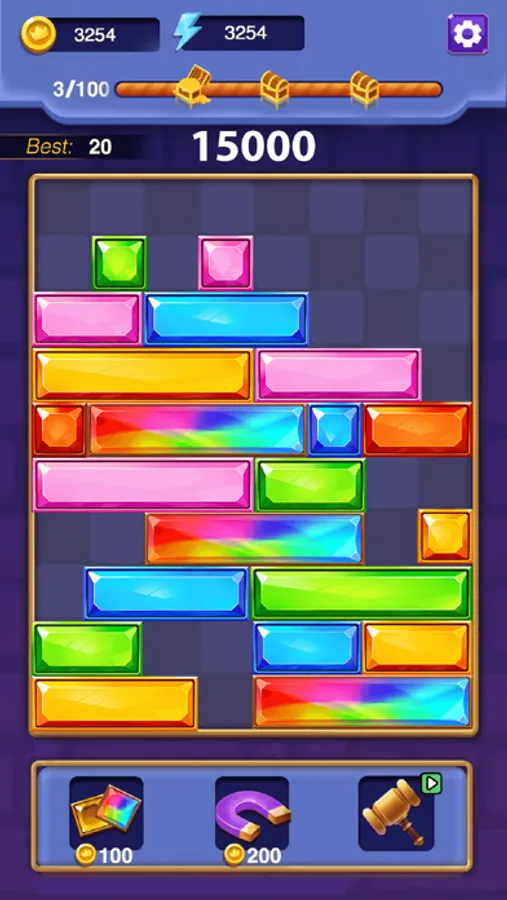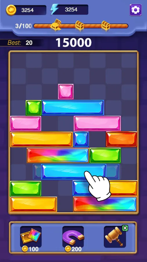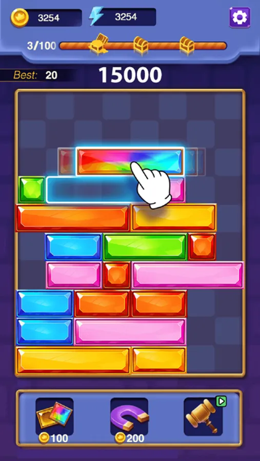- Drag the blocks left and right, and they will be eliminated when a row is filled.