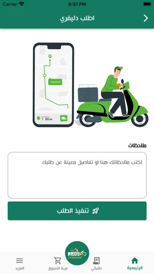 مع تطبيق وصل تقدر تطلب خدمة (اطلب دليفري) و من خلالها مندوبنا هيوصلك في المكان اللي انت هتحدده وينفذ طلباتك بكل احترافية و دقة , مع تطبيق وصل طلبك هيوصلك اسرع .