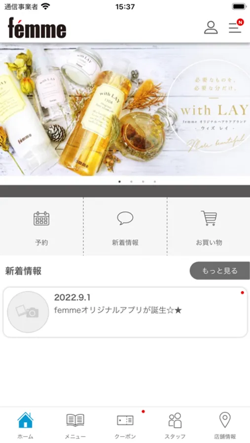 アプリを通してfemmeの新着情報やお得な情報をリアルタイムで受け取ることができます。
