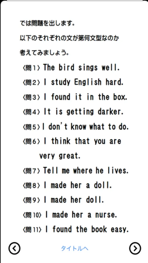 内容は「時や条件を表す副詞節」「5文型」「知覚動詞」「使役動詞」「感嘆文」「分詞構文」「関係副詞」「仮定法」の8項目です。