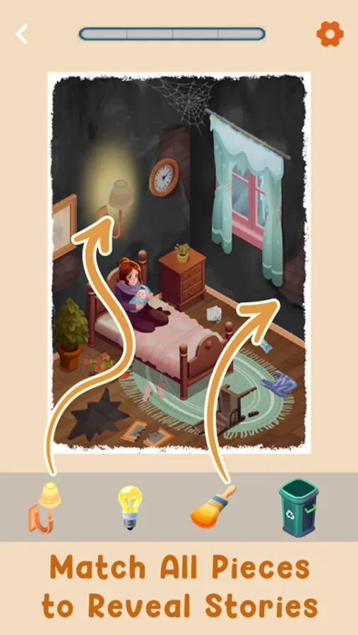In the beginning, there is nothing on the screen, all needed items for each level will be displayed at the bottom. Look closely at the art puzzle and find the spot where to place the item. As soon as all the items are the right place, the beautiful picture art will be lively!