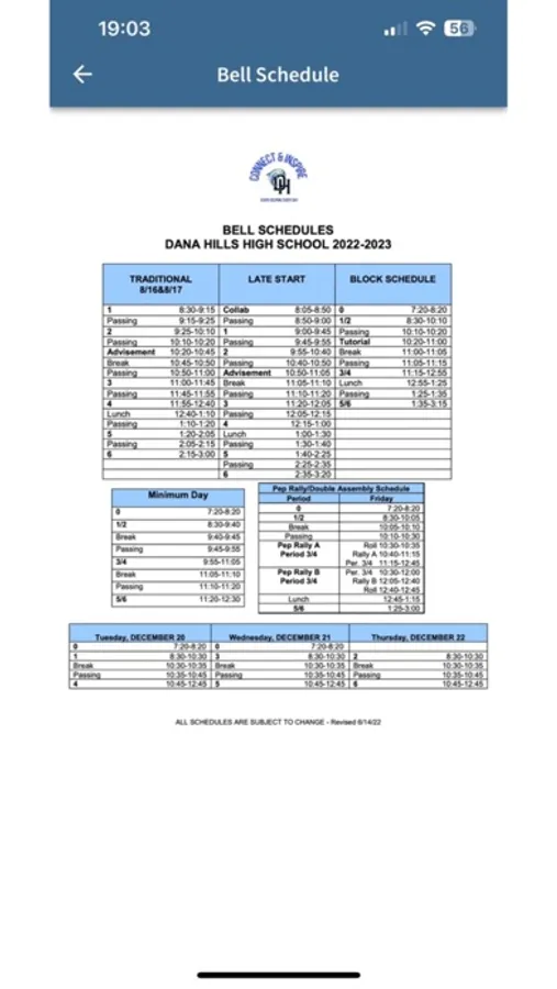 Introducing the Dana Hills app, the ultimate mobile app designed exclusively for the students, parents, faculty, and staff of Dana Hills High School. This comprehensive app brings all the essential information you need about our high school community right to your fingertips. Stay updated, informed, and connected with key features such as bell schedules, semester calendars, announcements, events calendar, and much more!