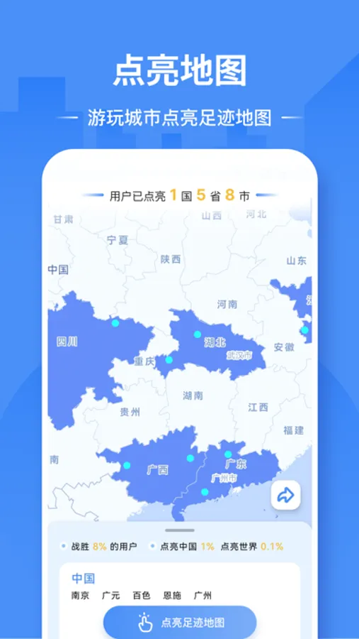 -游玩过的每个城市和国家点亮在全球地图上,点亮属于你的足迹地图