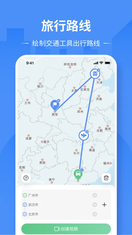 -创建有趣的旅行路线,选择交通工具,生成足迹动画,把乐趣分享给好友