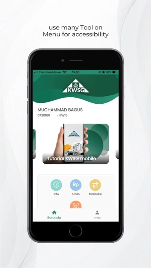 KWSG Mobile merupakan fasilitas layanan Koperasi Konsumen Warga Semen Gresik yang memudahkan Anda untuk bertransaksi langsung menggunakan smartphone Anda dengan aman, cecpat, dan mudah. Aplikasi ini memberikan layanan informasi saldo, informasi pelayanan, dan info terkini terkait perusahaan.