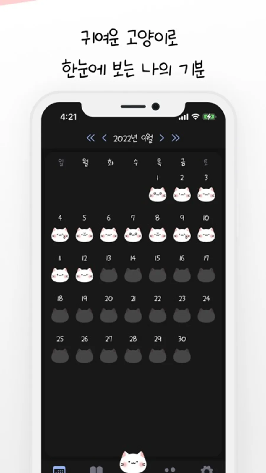 - 다섯 가지 기분으로 기록하여 나의 기분을 한눈에 볼 수 있어요.