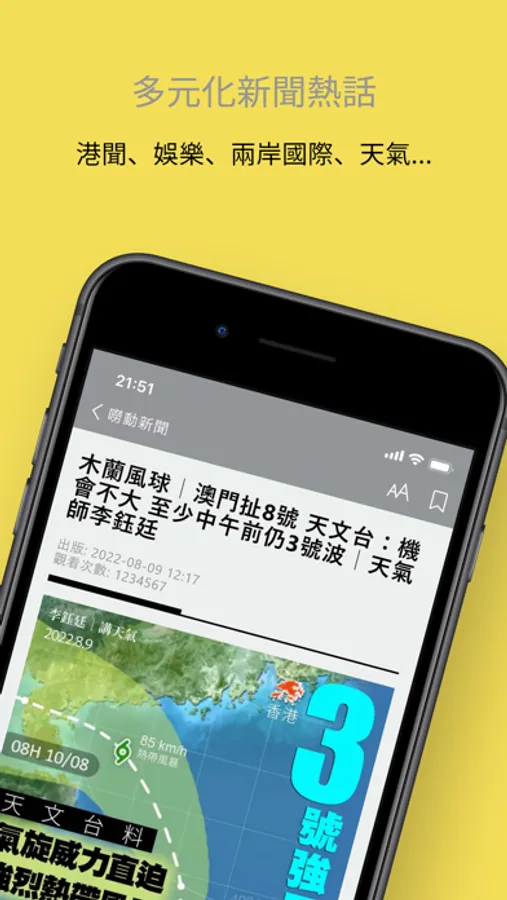 .即時新聞:當日時事要聞、各類突發新聞,由港聞、娛樂、兩岸國際至天氣,掌握社會最新動態。