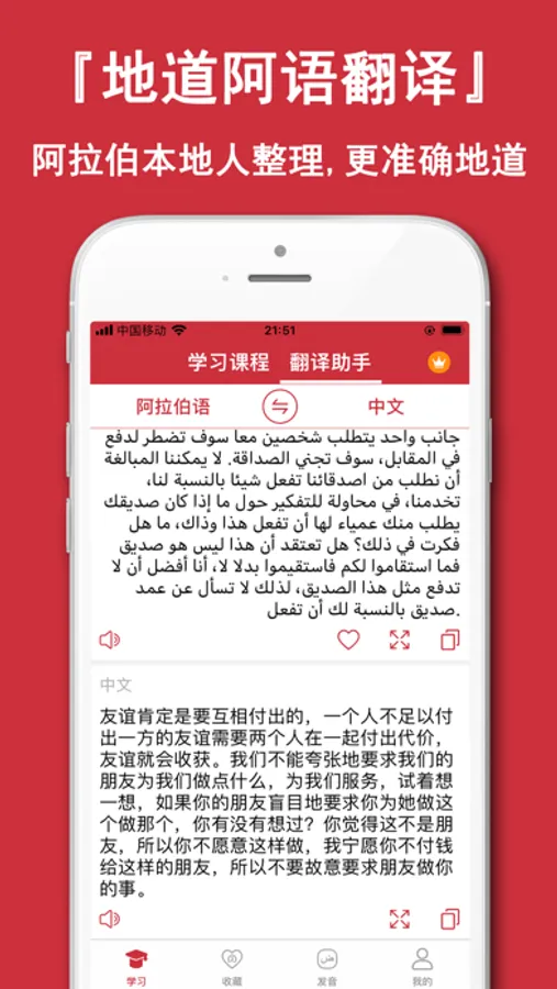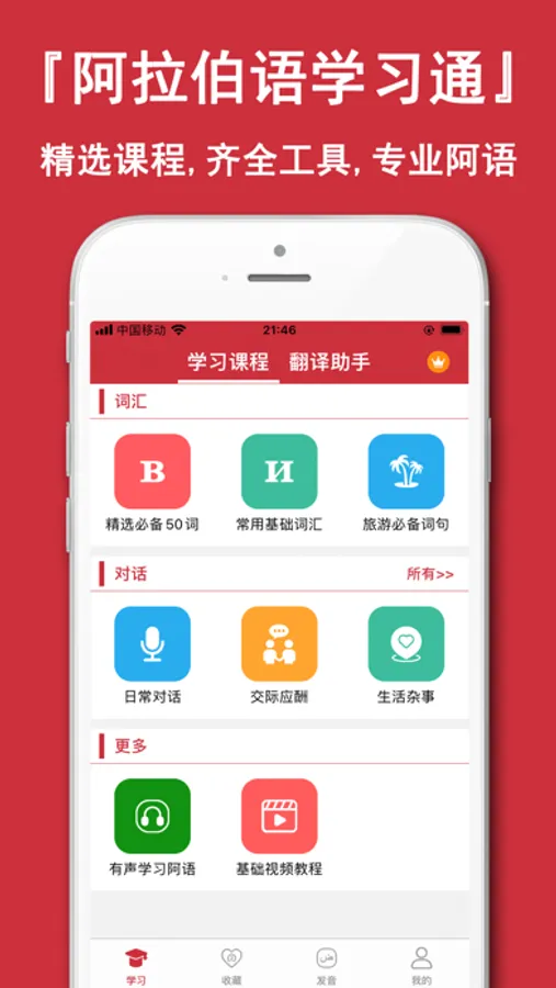 《阿拉伯语学习通》零基础阿拉伯语学习必备App。精选阿拉伯语初学者资料、阿拉伯语翻译工具,快速掌握阿拉伯语,助力阿拉伯语流利说。