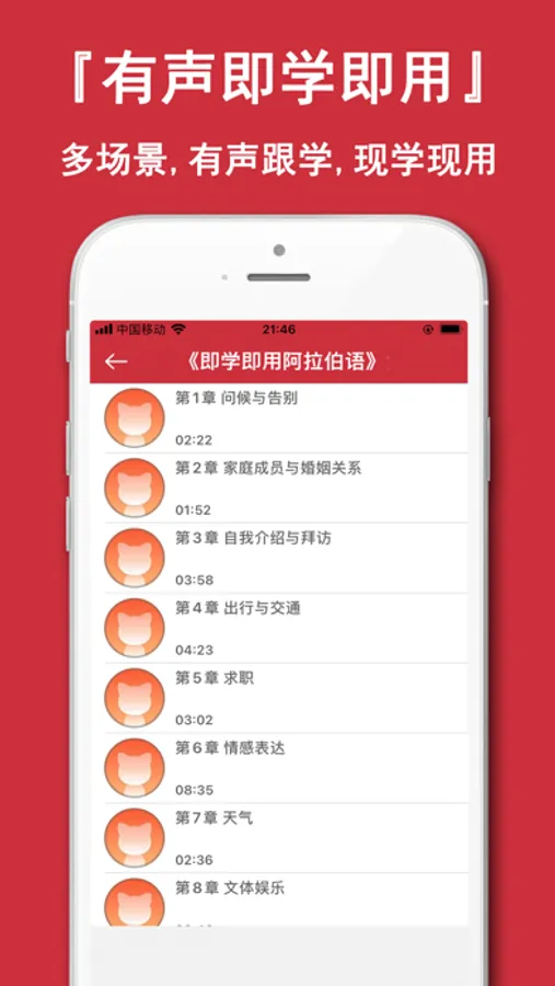 有声节目:整合阿拉伯语听力、口语、单词、教材等节目等你来听。