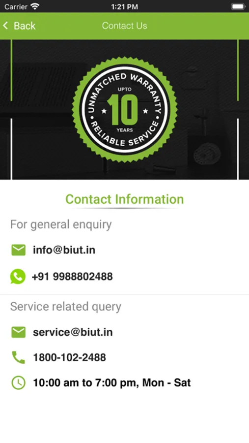 Our products come bearing upto 10 years of warranty, which gives you a peace of mind. So wherever you are, our best technicians will be a phone call away!
