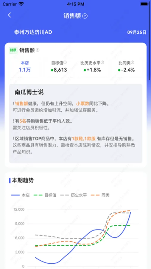 【南瓜博士说】帮您分析店内情况(KPI、BI数据、考勤等),为店员和管理层提供全方位的信息。