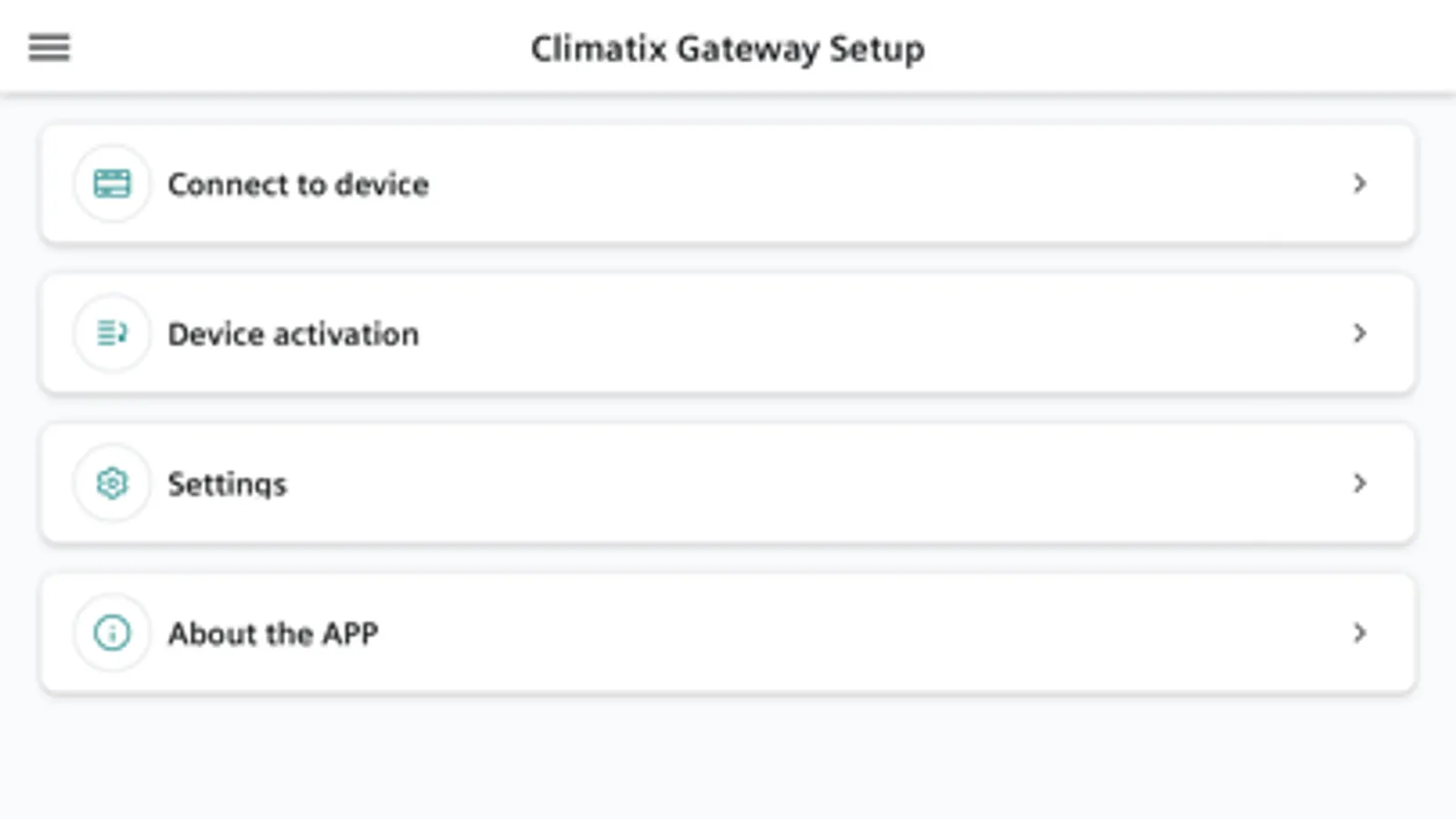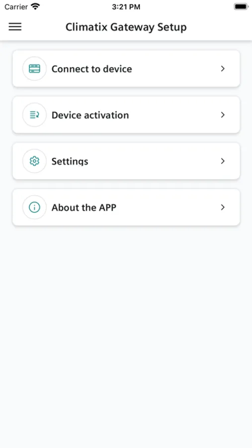 The Climatix GS App features the Siemens Climatix cloud gateways. These cloud gateways enable the user to efficiently connect Climatix controllers and 3rd party systems to the corresponding Siemens Cloud. Climatix GS is developed to allow gateway activation and network settings without the need for a PC or notebook.