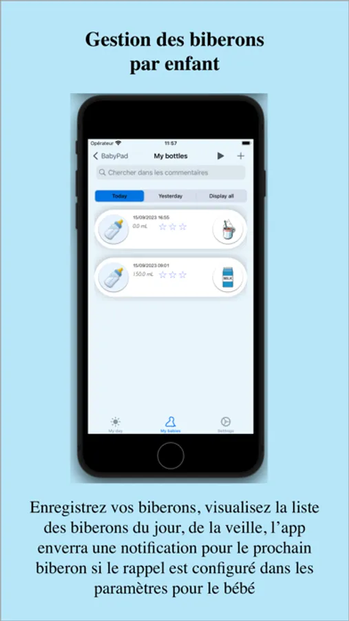 - Gestion des biberons et suivi des prises de biberons de votre bébé