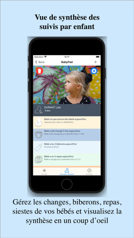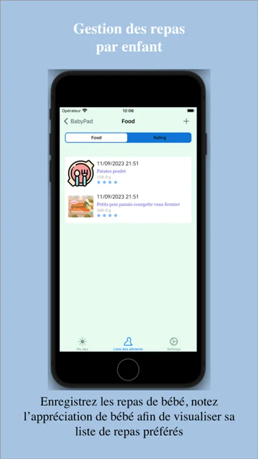 - Notez l'appréciation de bébé pour les repas que vous lui donnez, l'application remontera les aliments préférés de bébé
