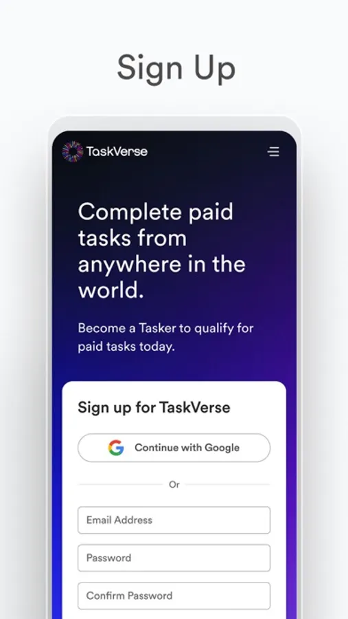TaskVerse is an app that allows you to pick up and complete paid tasks from anywhere in the world using your smartphone. As a Tasker, you can participate in simple tasks such as recording simple videos, transcribing audio, tagging words, and more.