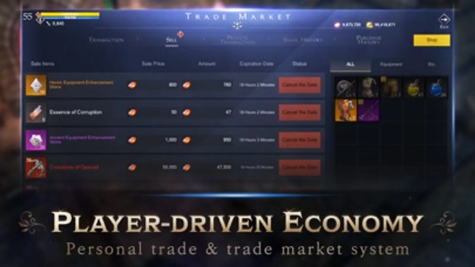 Become stronger by freely trading obtained loot, power of god and even characters.