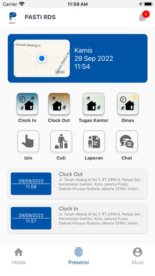 3. Clock-in , Clock-out, Tugas Kantor dan Dinas berbasis GPS.