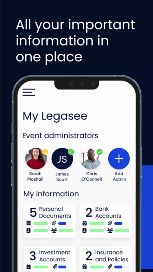 Legasee let's you take control of your end-of-life information plan by allowing you to upload all your important information which becomes accessible to selected individuals in the event of your death or incapacity.