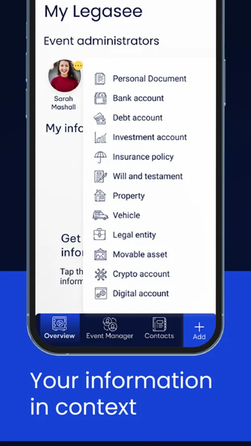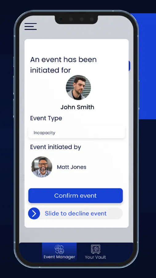 Legasee is designed to ensure that your important information is distributed effectively to designated individuals. With our unique event based access model you are able to retain your privacy while you are there, while also having peace of mind that the right people have access to your information when you are not.
