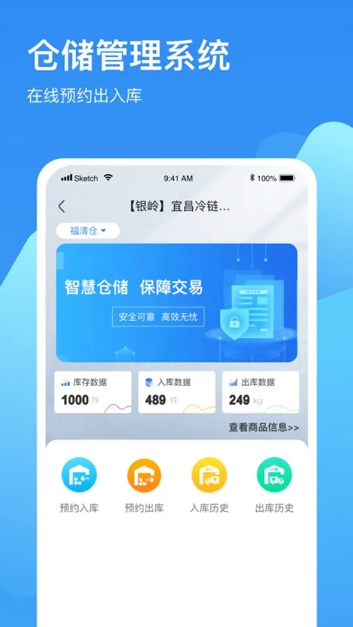 主要包括在线预约出入库,查看出入库历史以及预约历史,做到货物从入到出,到后续销售等业务的全链路管理。