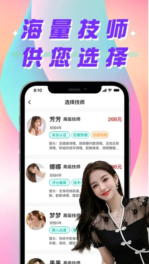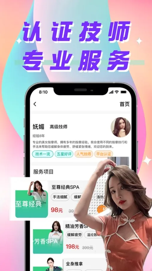 【技师认证】技师实名认证持证上岗服务,杜绝虚假按摩技师。确保真人真图。