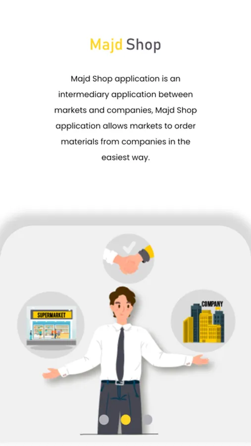 The Majd Shop application is the first program of its kind at the level of Iraq to facilitate the work of companies and markets and to increase the marketing of the company's products. The Majd Shop program acts as an intermediary between the company and the markets to sell and market the company's products in the easiest way and in the shortest time. The Majd Shop application provides many services to the markets Such as (ordering the company’s products, obtaining offers and discounts in the offers section, searching for a product by scanning the barcode, searching for companies and company products, and many other services) and the Majd Shop application is characterized by ease of use and speed of use.