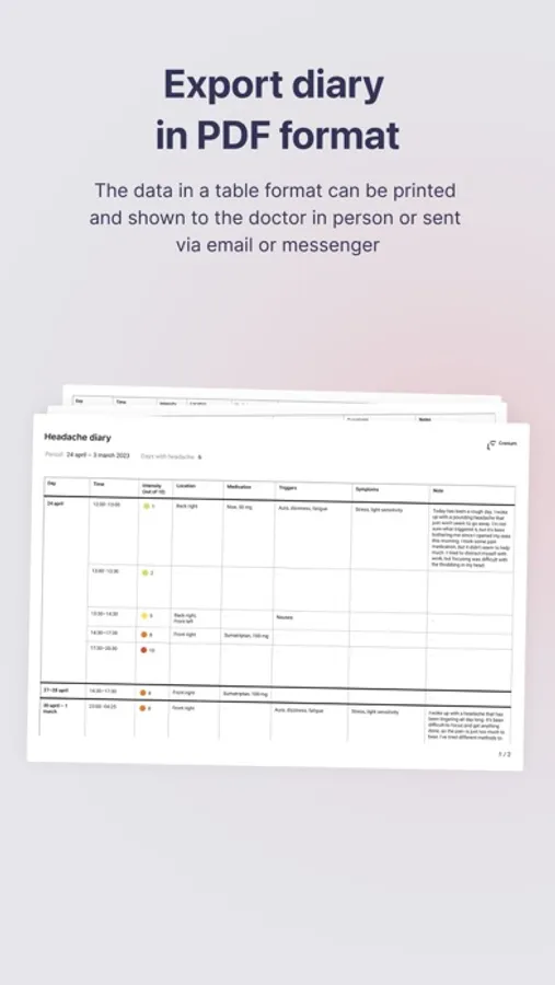 Get clean and comprehensible reports about most frequent headache triggers and symptoms to share with your doctor.
