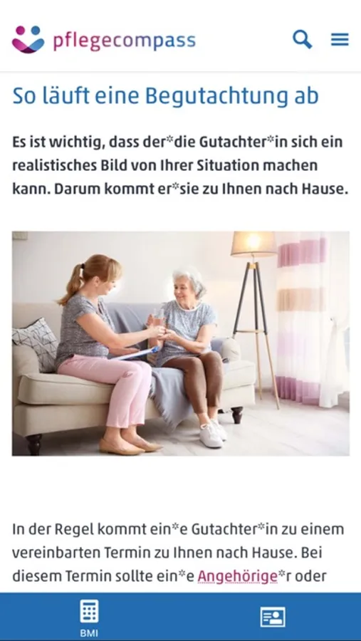 Die App pflegecompass richtet sich an Menschen mit Pflegebedarf, ihre Familien, Freund*innen und Bekannten. Alle, die sich auf eine Pflegesituation vorbereiten möchten finden in dieser App ebenfalls alle wichtigen Informationen.
