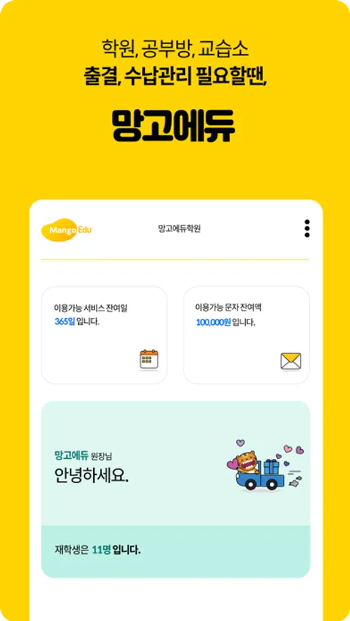 학원 운영에 꼭 필요한 기능만 담은 망고에듀로 학원운영을 시작해보세요