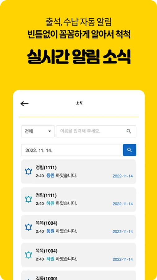 + 망고에듀 선생님앱으로 원생의 출결, 수납 알림을 실시간 받아 보실 수 있습니다.