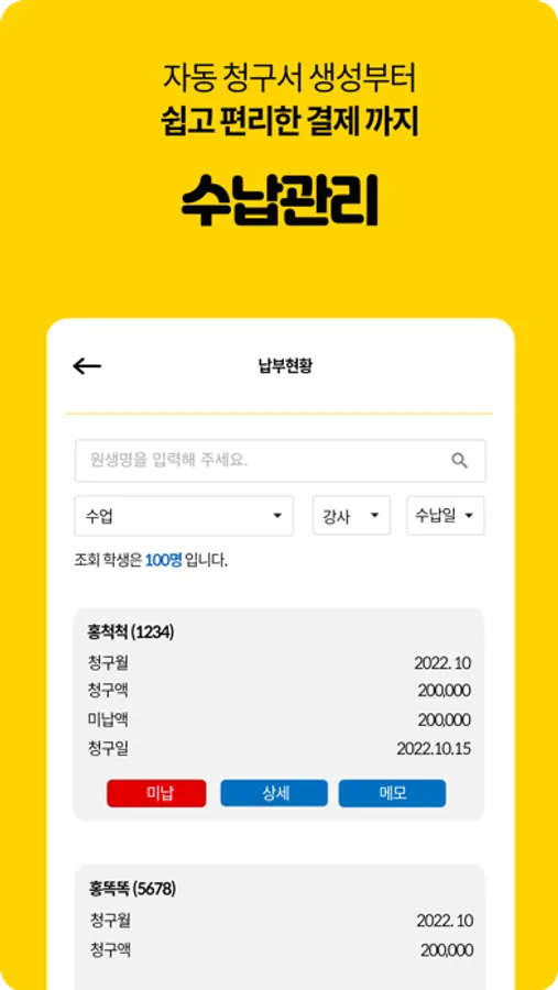 원생/출결/수납/알림/수업/상담관리 등 학원운영을 보다 쉽고 편리하게 하실 수 있습니다.