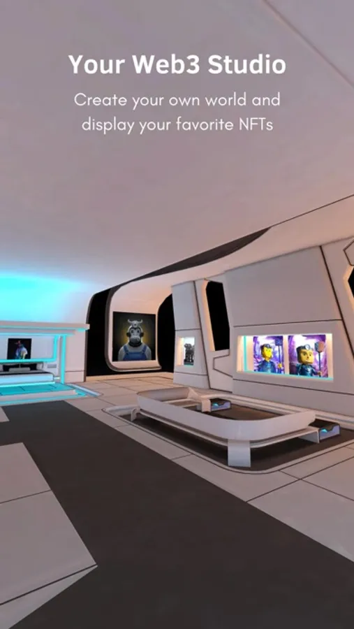 As a gallery, the studio contains many frames allowing you to display your 2D NFTs. 12 wall spaces are available to showcase your most beautiful pieces.