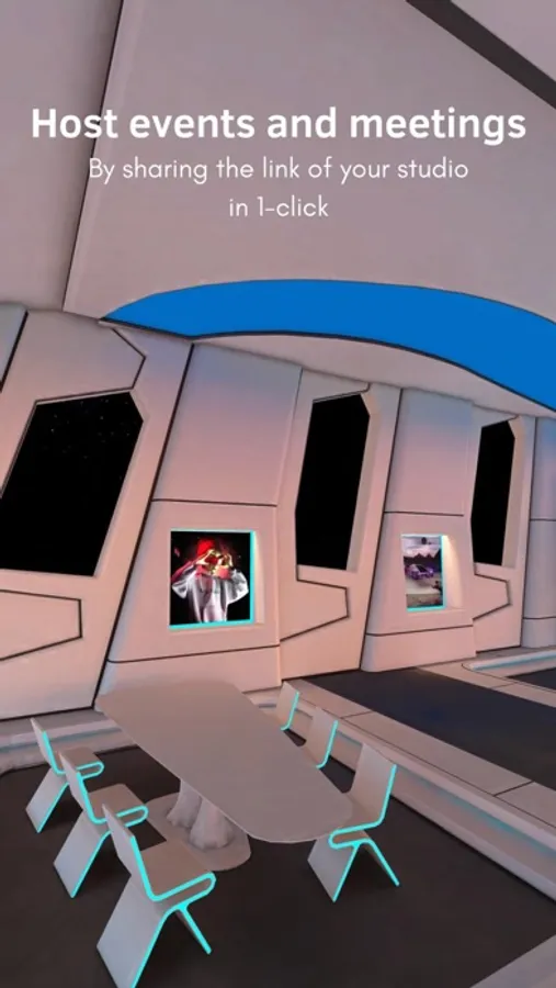 By creating a unique access link to your Studio, the owner can share it and allow access to his guests. You can then meet in your flat and move around to discover your works of art. -