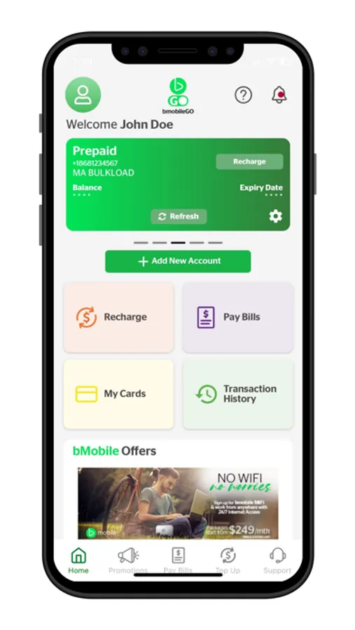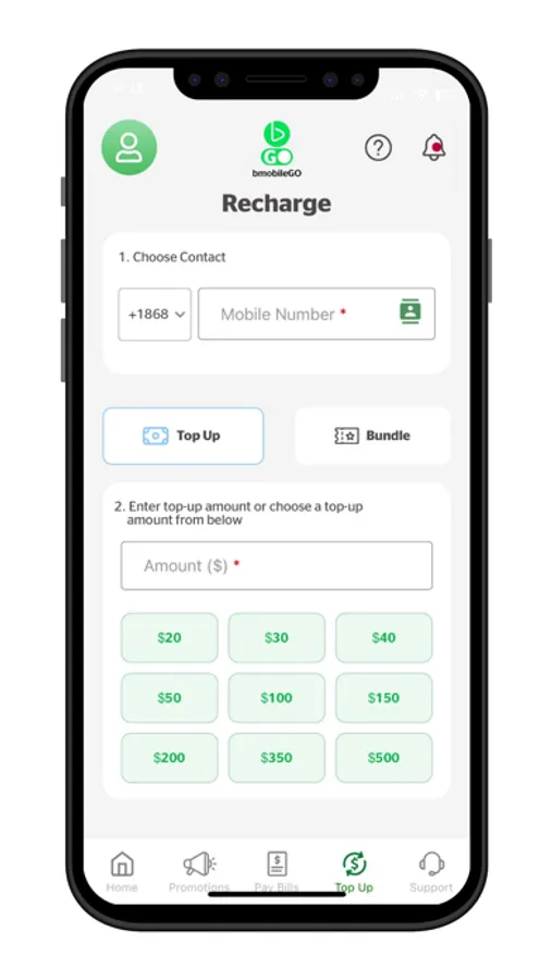 • Link family and friends to your bmobileGo account: make bill payments on behalf of family and friends or send them top-ups and bundles using our simple dashboard