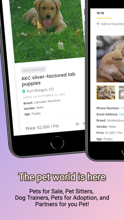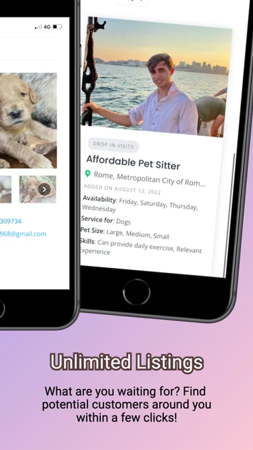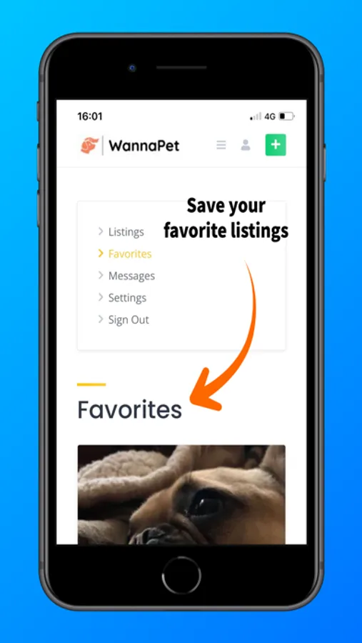 Contact and message pet owners, sitters, and trainers right from the app. Save the listings that you prefer by adding them to your “Favorites” section.
